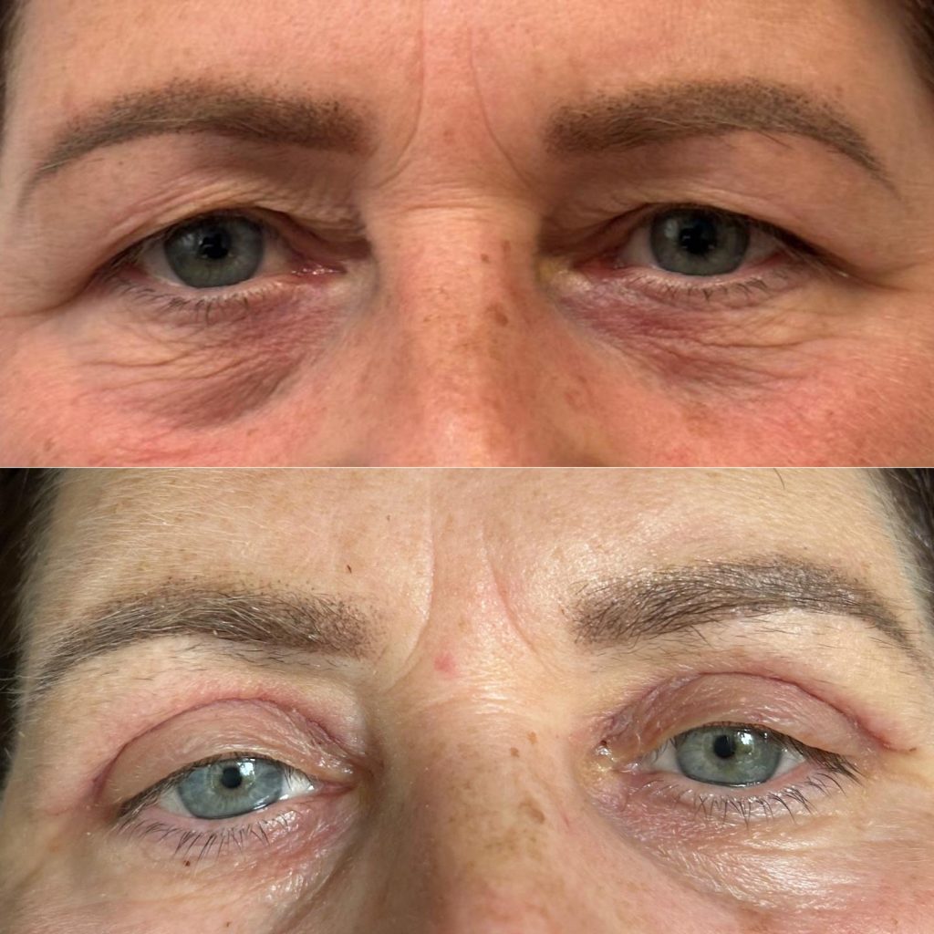 Zabieg chirurgiczny eliminujący „worki pod oczami”, nadmiar skóry i wiotkie tkanki. Efektem jest wygładzona dolna powieka i młodszy wygląd.